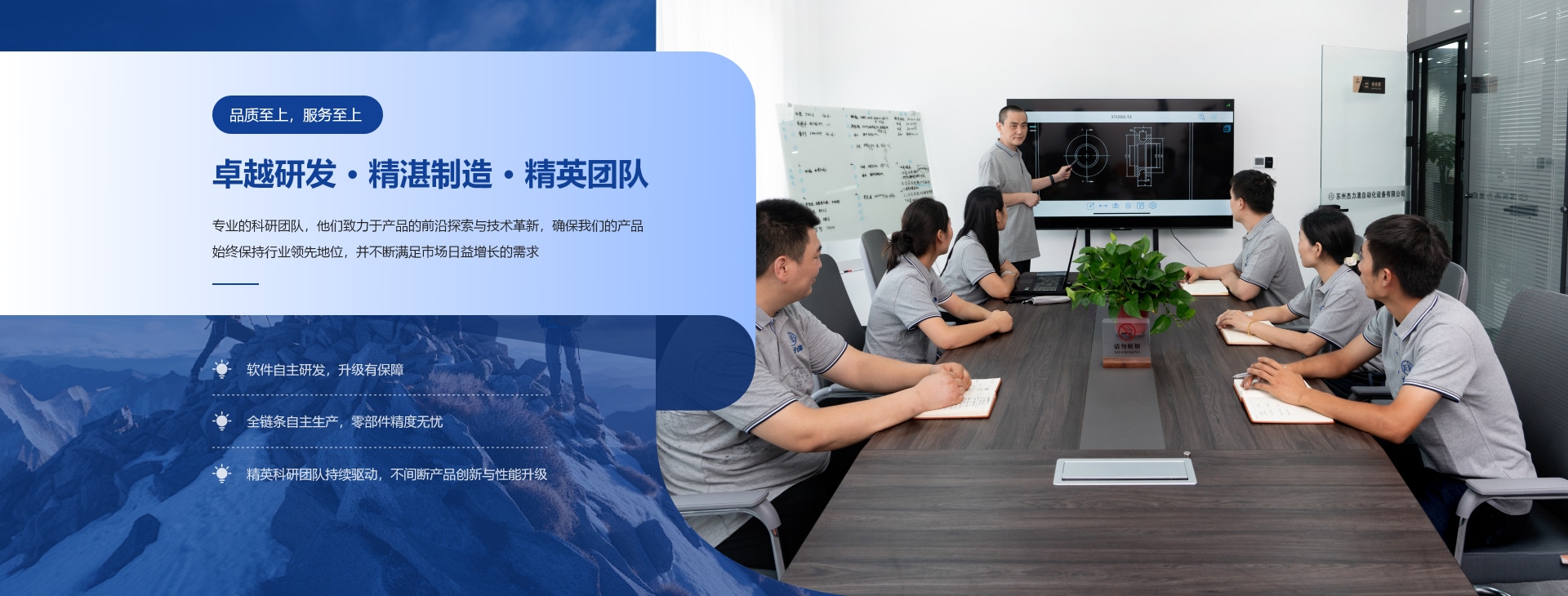 公司擁有一支高水平的研發(fā)和制造團(tuán)隊(duì),包括軟硬件契合的研發(fā)、設(shè)計(jì)和生產(chǎn),研發(fā)和生產(chǎn)了多款行業(yè)自動(dòng)化設(shè)備, 并和多家高新技術(shù)企業(yè)建立了長(zhǎng)期的合作關(guān)系,業(yè)務(wù)及影響力遍及整個(gè)大陸地區(qū), 成為工業(yè)級(jí)客戶(hù)提升效率、 制造企業(yè)價(jià)值的長(zhǎng)久合作伙伴,在國(guó)內(nèi)領(lǐng)域建立領(lǐng)導(dǎo)地位。